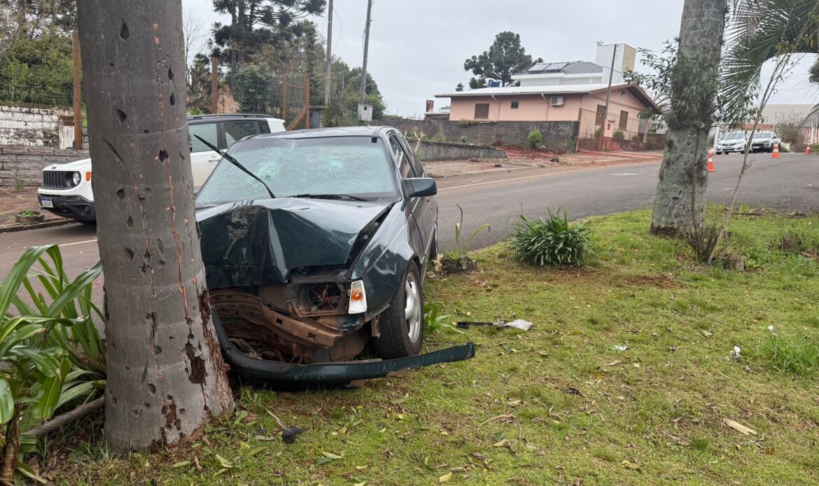 O condutor de um GM/Kadet, que seguia pela rua Francisco Stawinsk, por motivos desconhecidos perdeu o controle da direção e colidiu contra uma árvore, no canteiro central.