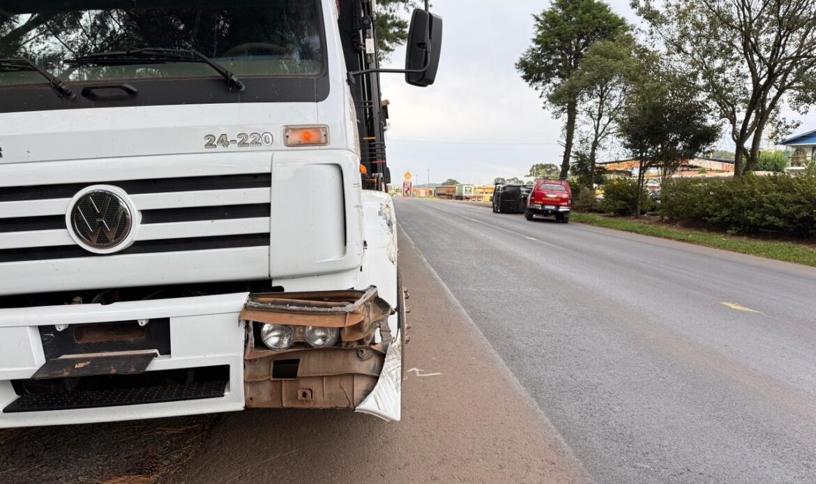 A colisão envolveu um caminhão e uma caminhonete Ford/Ranger.