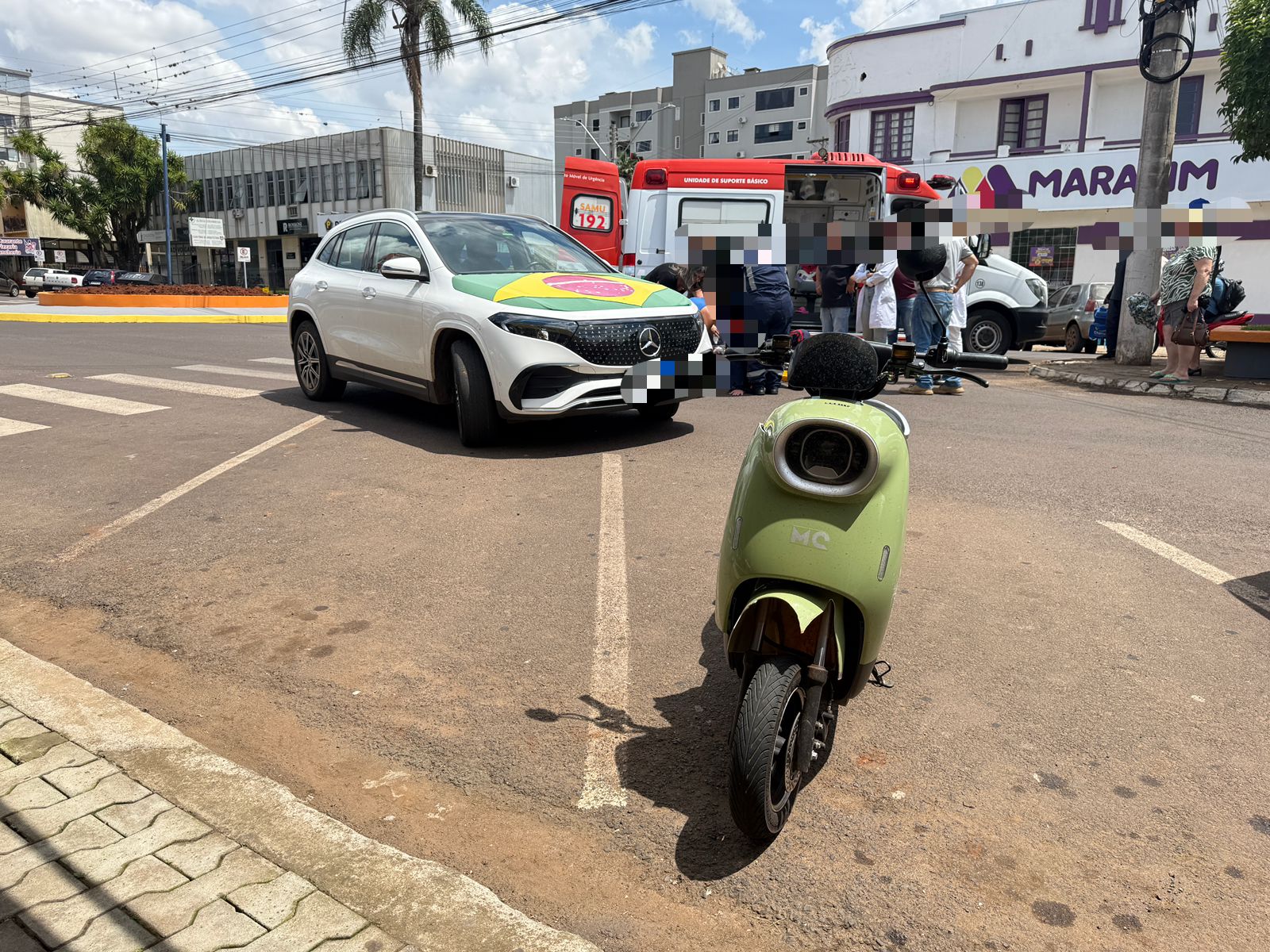 Segundo informações apuradas no local, a condutora de uma moto elétrica, uma menor de idade, seguia pela avenida quando acabou colidindo na traseira de um carro. O veículo manobrava em ré para sair de uma vaga de estacionamento oblíquo, momento em que ocorreu o impacto.