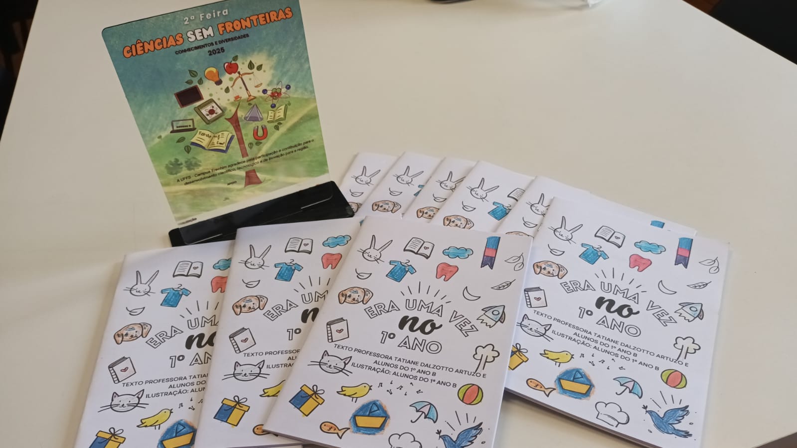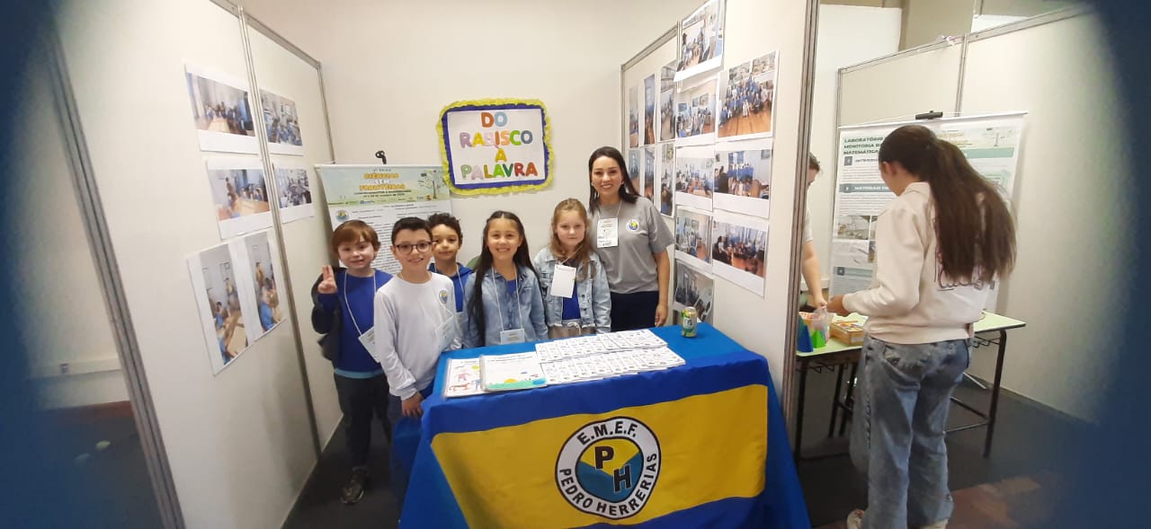 Os alunos do 1º Ano B da Escola Municipal de Ensino Fundamental Pedro Herrerias participaram, no dia 23 de outubro, da Feira Sem Fronteiras, promovida pela Universidade Federal da Fronteira Sul (UFFS), apresentando o projeto “Do Rabisco à Palavra”, que encantou o público pela criatividade e sensibilidade.
