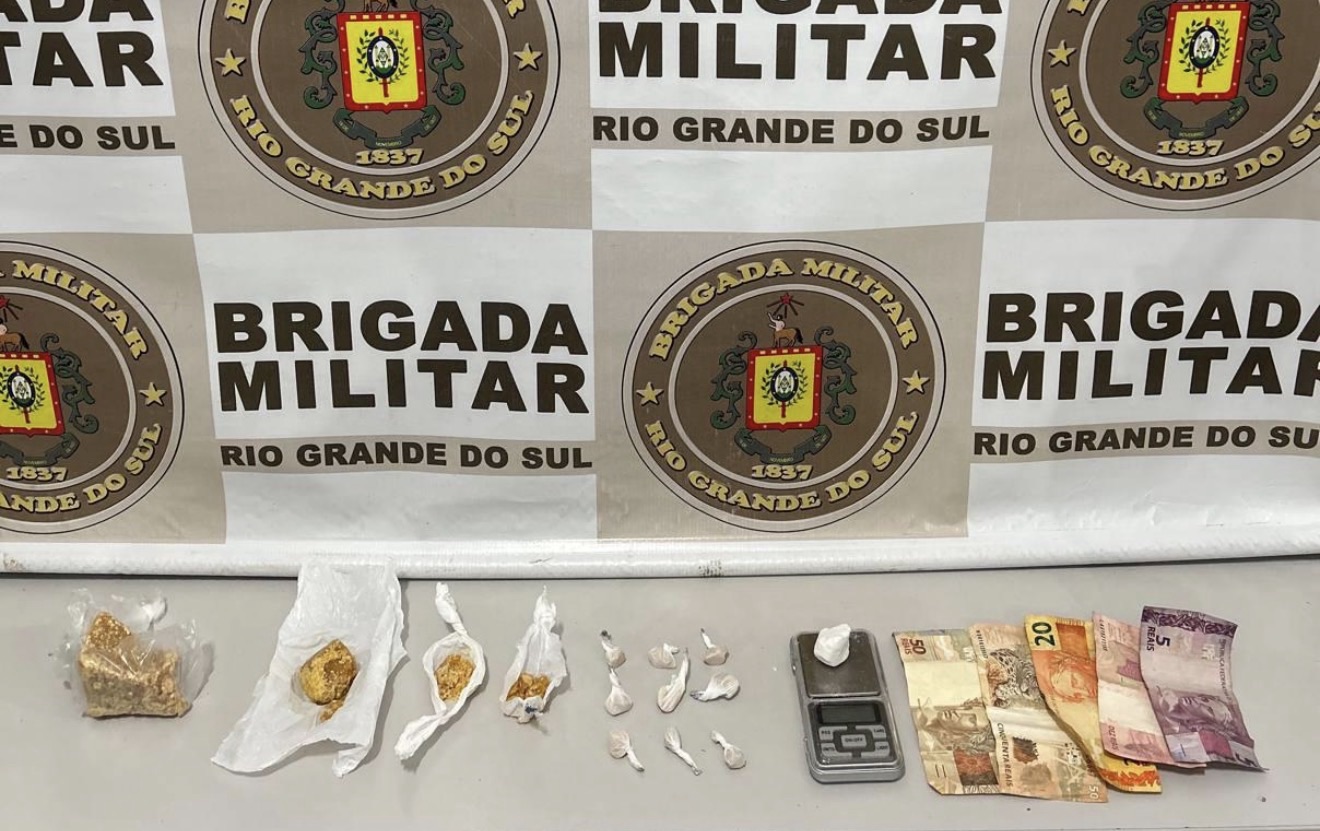 Durante a ação, foram apreendidas 11,57 gramas de cocaína, 150,03 gramas de crack, uma balança de precisão e dinheiro.
