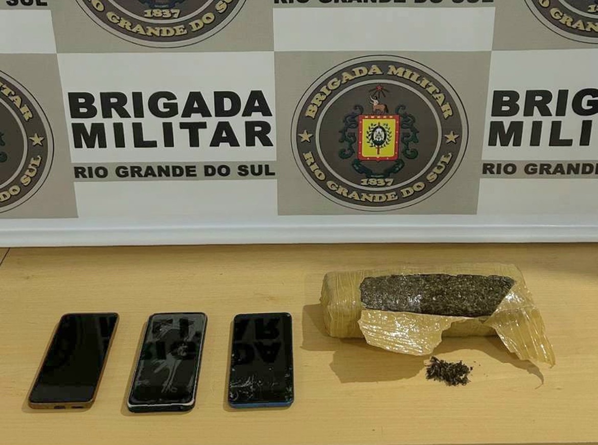 A guarnição efetuou a abordagem do veículo, onde em busca veicular foram encontrados três celulares e um tijolo de maconha pesando 731 gramas.
