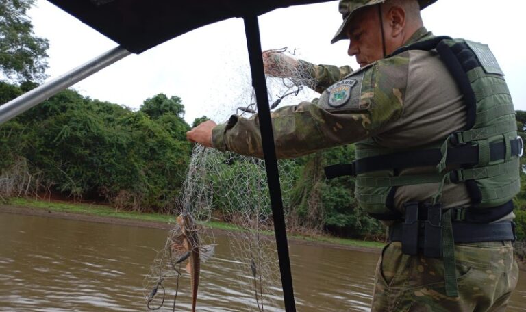 Na Barragem de Ernestina, os policiais militares, utilizaram embarcação e realizaram o patrulhamento no ambiente aquático. Durante a navegação foram localizados 80 metros de redes de pesca, inseridas, ilegalmente, nas águas. Peixes das espécies, popularmente conhecidas como Jundiá, Viola e Saicanga, que estavam vivos, presos às redes, foram devolvidos ao ambiente aquático. Os responsáveis pelos petrechos não foram localizados e o material foi recolhido para ser descartado corretamente.