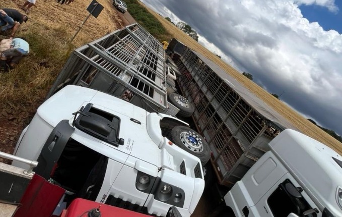 Os Bombeiros Voluntários de Tapejara foram chamados para ajudar na abertura do compartimento de carga, usando o desencarcerador para liberar o acesso aos animais.