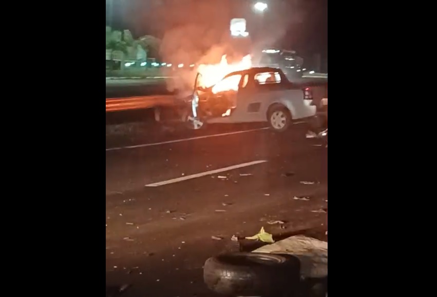 De acordo com a Polícia Rodoviária Federal (PRF), a ocorrência começou com uma batida traseira, seguida de colisão contra a defensa metálica da rodovia e posterior incêndio em uma GM Montana, emplacada em Estrela. O condutor, de 32 anos, conseguiu sair do veículo antes que as chamas se espalhassem. O Corpo de Bombeiros Militar foi acionado para conter o fogo.