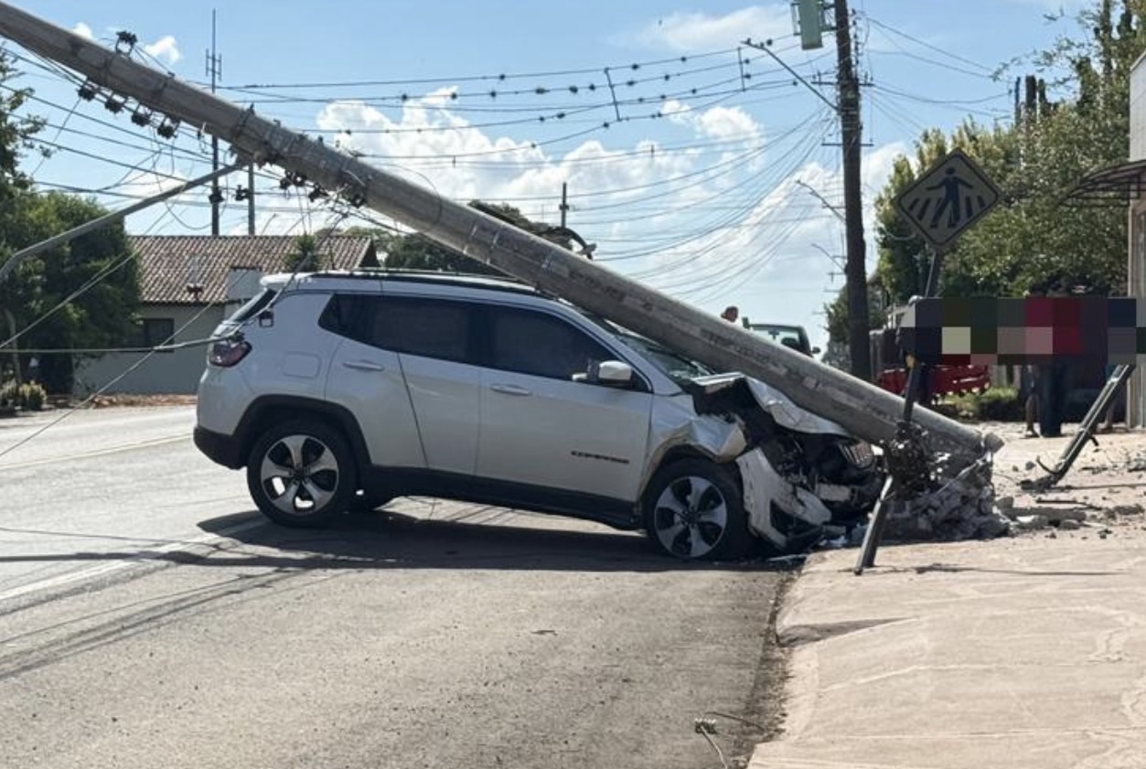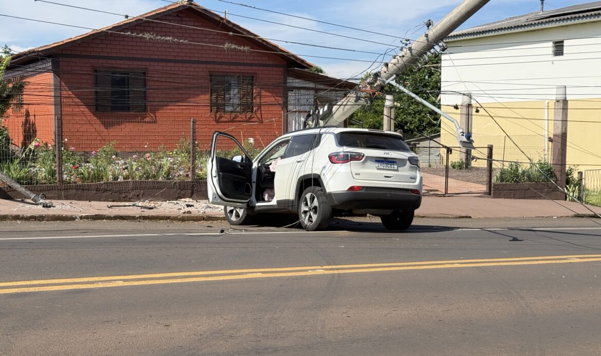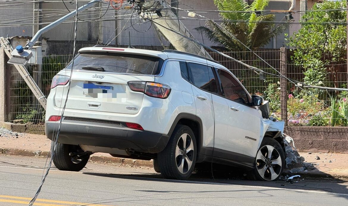 Segundo informações colhidas no local, o condutor de um Jeep/Compass, que seguia no sentido bairro Santuário, perdeu o controle da direção e colidiu contra um poste de energia. Com a força de colisão o poste foi cortado.