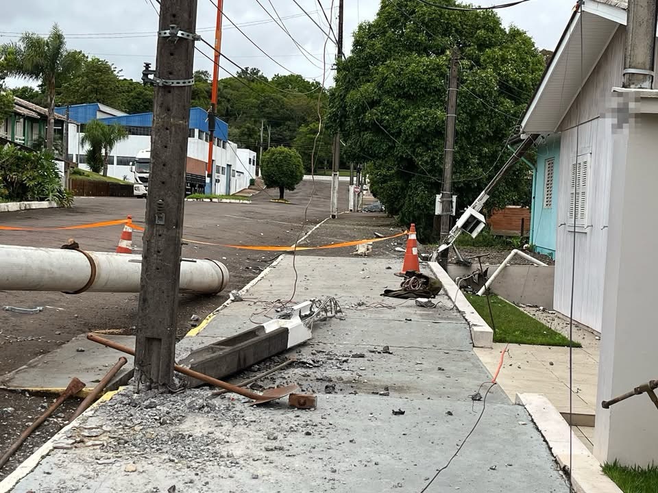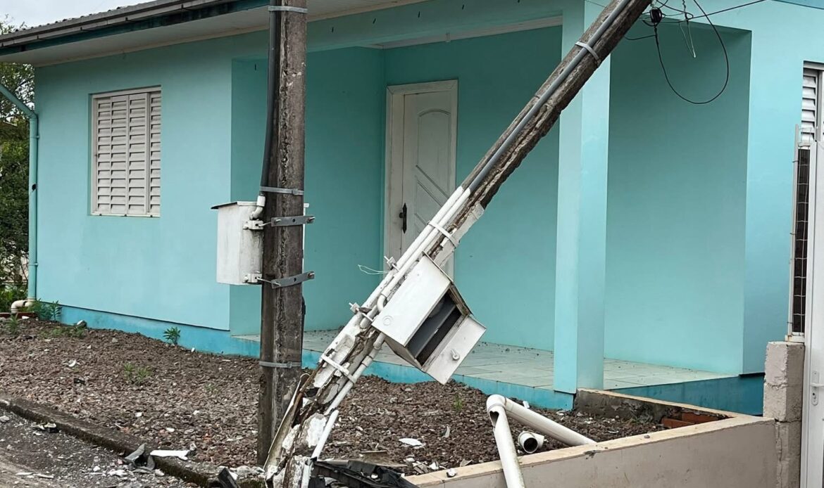 Segundo informações, o condutor de um Hyundai/I30 seguia em alta velocidade quando perdeu o controle da direção, invadiu a calçada e bateu contra o poste de entrada de luz de uma residência.