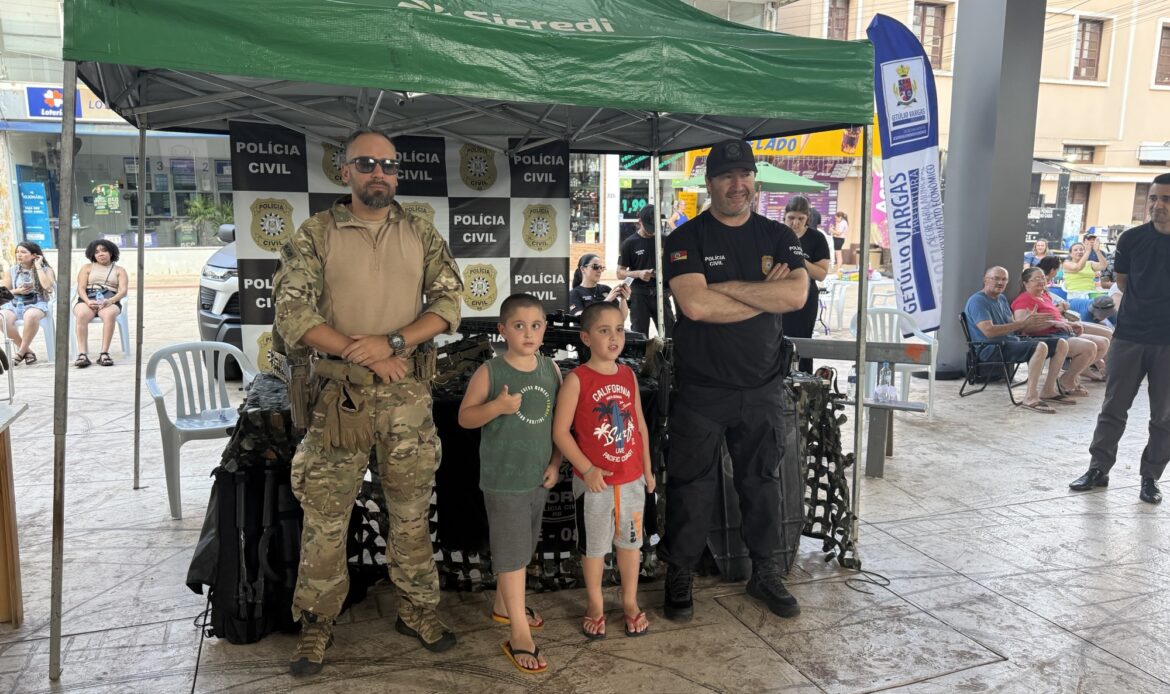A 🕵️♂️ Polícia Civil atraiu a curiosidade das famílias, especialmente das crianças, que puderam ver de perto equipamentos, conversar com os policiais e conhecer parte da rotina investigativa. Já a 👮♂️ Brigada Militar ampliou o contato com o público por meio de ações educativas, como o espaço do Proerd, que promoveu atividades lúdicas e diálogos sobre cidadania, convivência e prevenção.