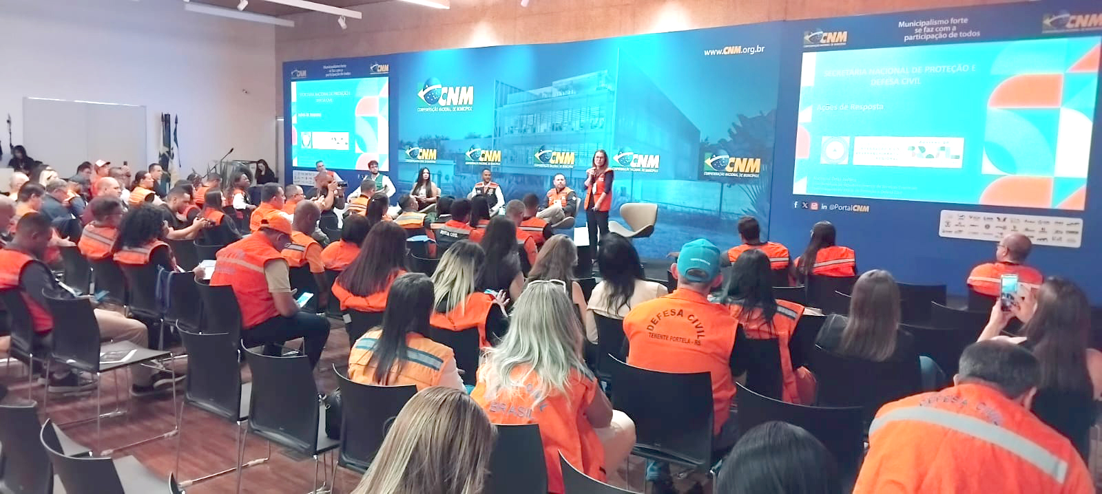 Nos dias 6 e 7 de novembro, a Defesa Civil de Getúlio Vargas RS participou do Encontro Nacional das Defesas Civis Municipais, promovido pela Confederação Nacional de Municípios (CNM), em Brasília/DF. O evento reuniu mais de 700 pessoas, incluindo coordenadores e representantes de todo o país, para discutir políticas públicas, estratégias de