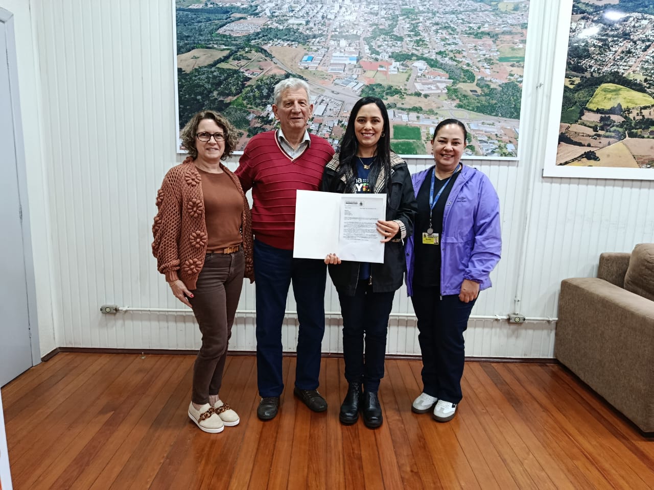 Na manhã desta sexta-feira, 7 de novembro, o prefeito Pedro Paulo Prezzotto, a secretária de Educação, Cultura e Desporto, Luciane Spanhol Bordignon, e a professora Mônica T. M. da Silva, do Setor de Desporto, recepcionaram a deputada estadual Eliana Bayer (Republicanos) e sua equipe, em visita ao município.