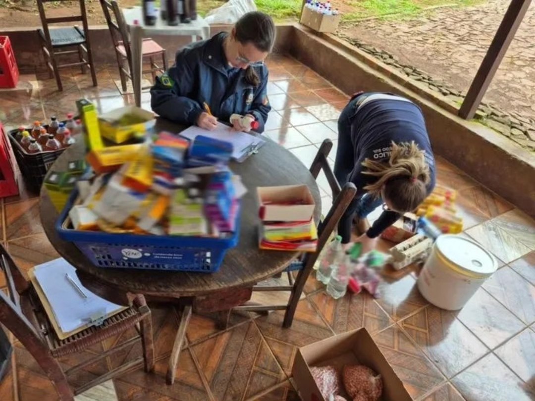 Entre os itens recolhidos estavam vinho, cachaça, banha, ovos, mel, queijo, feijão, leite e carne sem origem comprovada. Também foram encontrados alimentos vencidos, como frango congelado cuja validade havia expirado há oito anos.