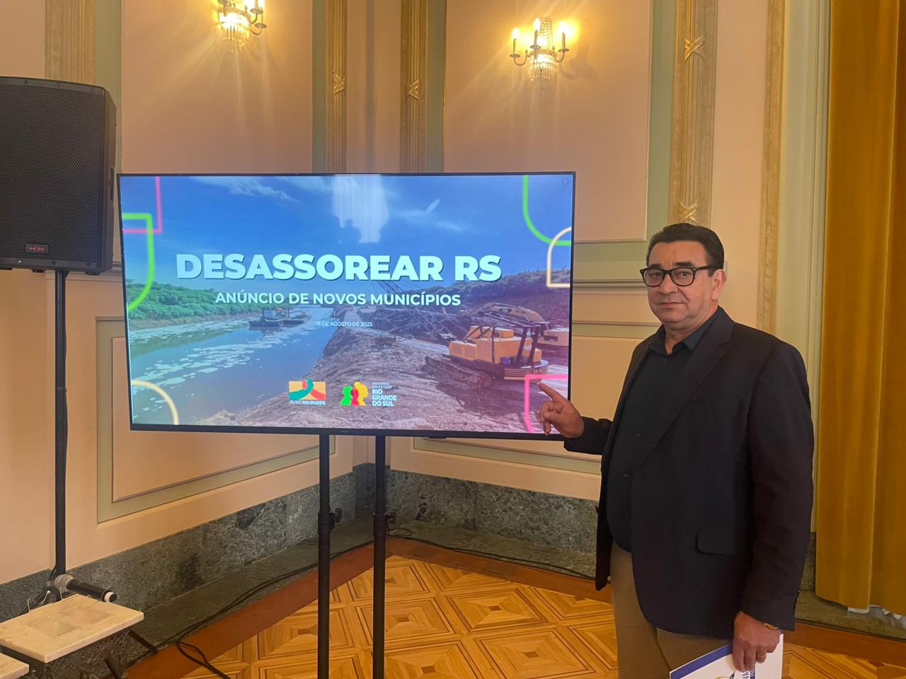 O secretário municipal de Obras de Getúlio Vargas, Sérgio Lima, representando o prefeito Pedro Paulo Prezzotto, recebeu, na manhã desta sexta-feira (15), a confirmação oficial da adesão do município à Fase 2 do Programa Desassorear RS diretamente das mãos do governador Eduardo Leite.