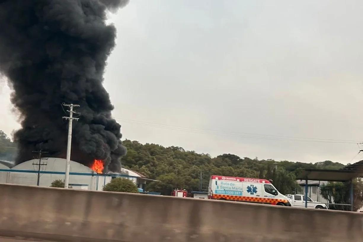 Uma empresa de materiais recicláveis pegou fogo na manhã desta quinta-feira, 04, em Santa Cruz do Sul, no Vale do Rio Pardo. O prédio fica localizado às margens da RS-287, próximo a um posto do Comando Rodoviário da Brigada Militar (CRBM).
