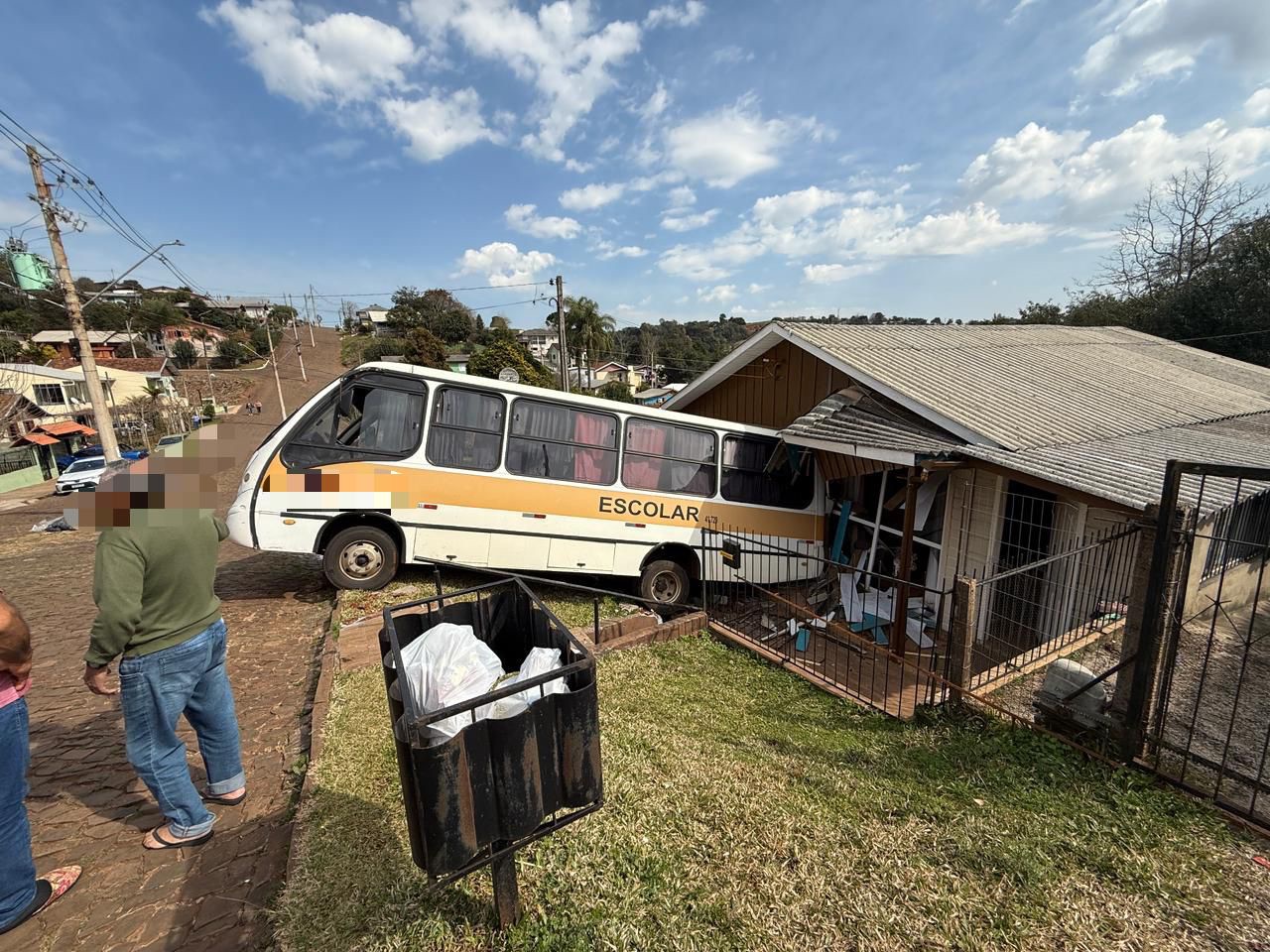 Por volta das 12h15min deste sábado, 02, um ônibus que estava estacionado desgovernou e atingiu um veículo e invadiu uma residência em Getúlio Vargas.