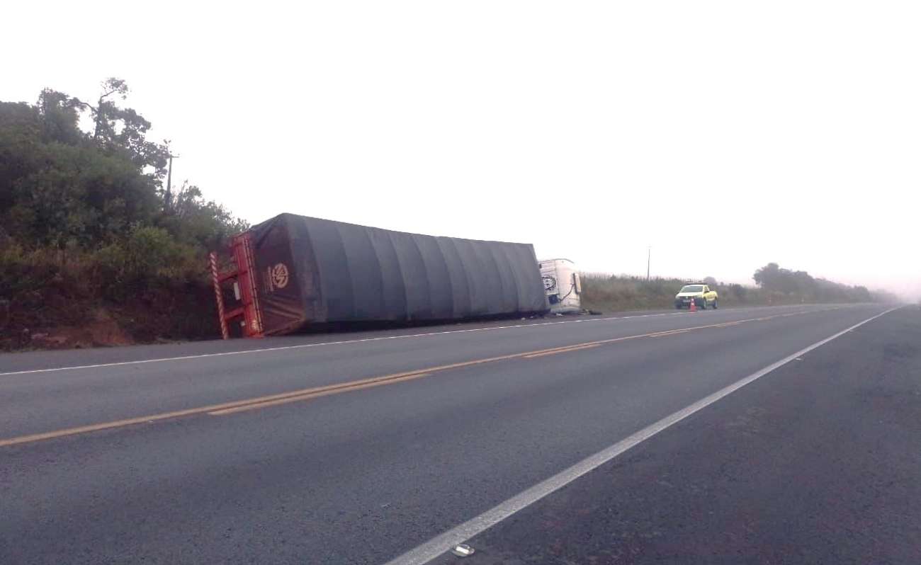 De acordo com informações, o veículo conduzido pela vítima, um conjunto formado por caminhão trator e semirreboque, saiu da pista e tombou.
