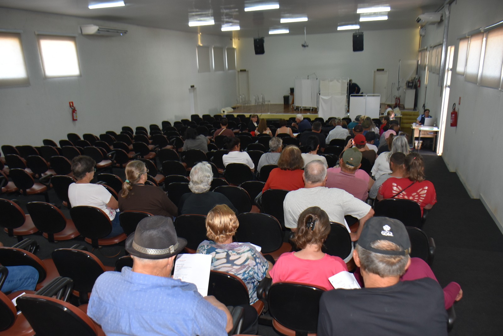Os atendimentos foram realizados no Salão de Atos da Prefeitura de Getúlio Vargas, gentilmente cedido pela Administração Municipal, por meio da Secretaria Municipal de Saúde e Assistência Social, adaptado para receber toda a estrutura de um consultório oftalmológico.