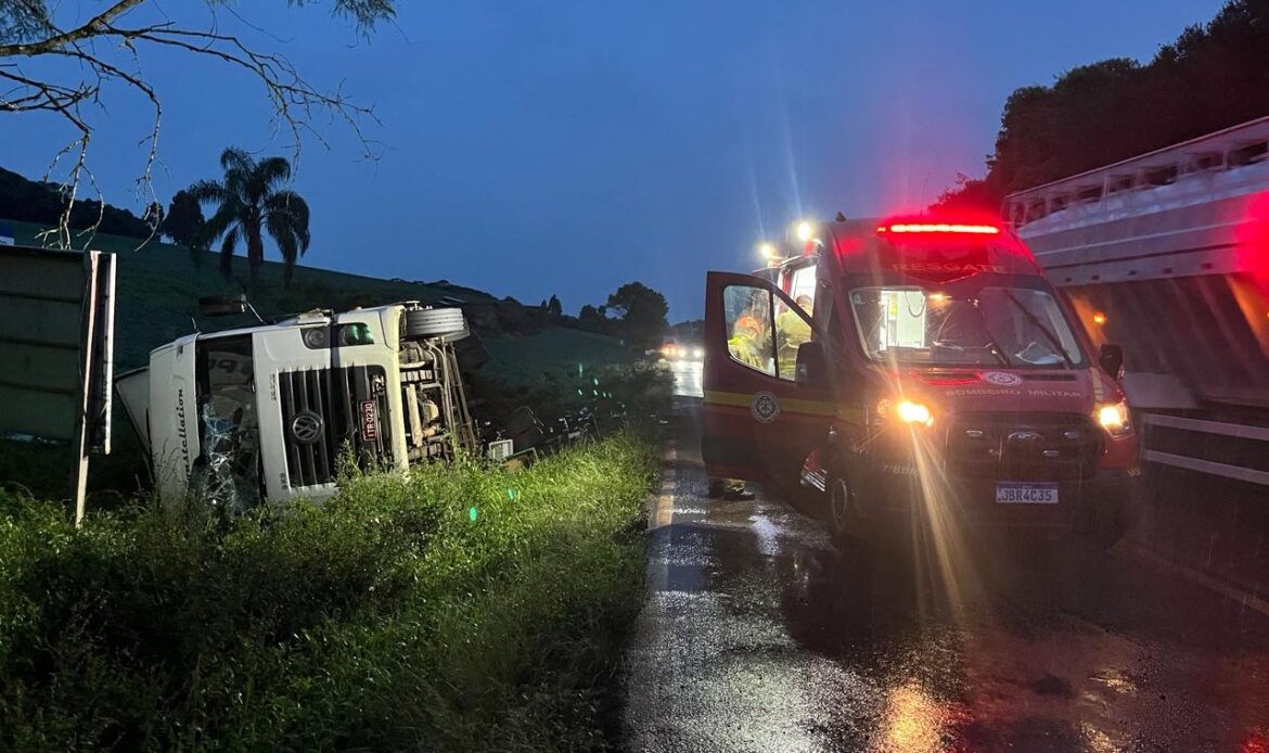 Condutor perde o controle e tomba caminhão na ERS-135 em Estação