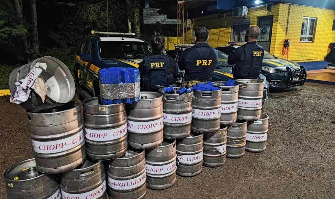Agentes da Polícia Rodoviária Federal (PRF) realizaram patrulha pelo trecho da BR 386, em Lajeado, quando deram ordem de parada ao motorista de um caminhão Mercedes Benz. Iniciados os procedimentos de averiguação, o condutor apresentou nervosismo com a abordagem. Durante checagem no compartimento de carga, os policiais visualizaram barris, que, segundo o motorista, continham chope, porém desconfiaram […]
