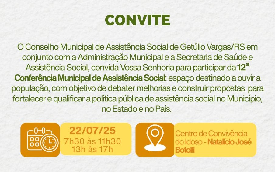 Getúlio Vargas realiza 12ª Conferência Municipal de Assistência Social nesta terça-feira