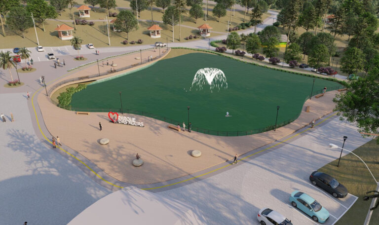 A concepção do projeto tem como norte a água como elemento estruturador. O lago central e a queda d’água, já existentes, inspiraram soluções de uso público, lazer e contemplação. Decks e passarelas avançando sobre a lâmina d’água, jatos iluminados e uma praça molhada integram a proposta de fortalecer a relação da população com esse recurso natural. “O Parque das Águas tem como identidade a abundância hídrica. O projeto respeita essa essência e busca criar espaços para usufruir, admirar e preservar”, explicou Makeli.