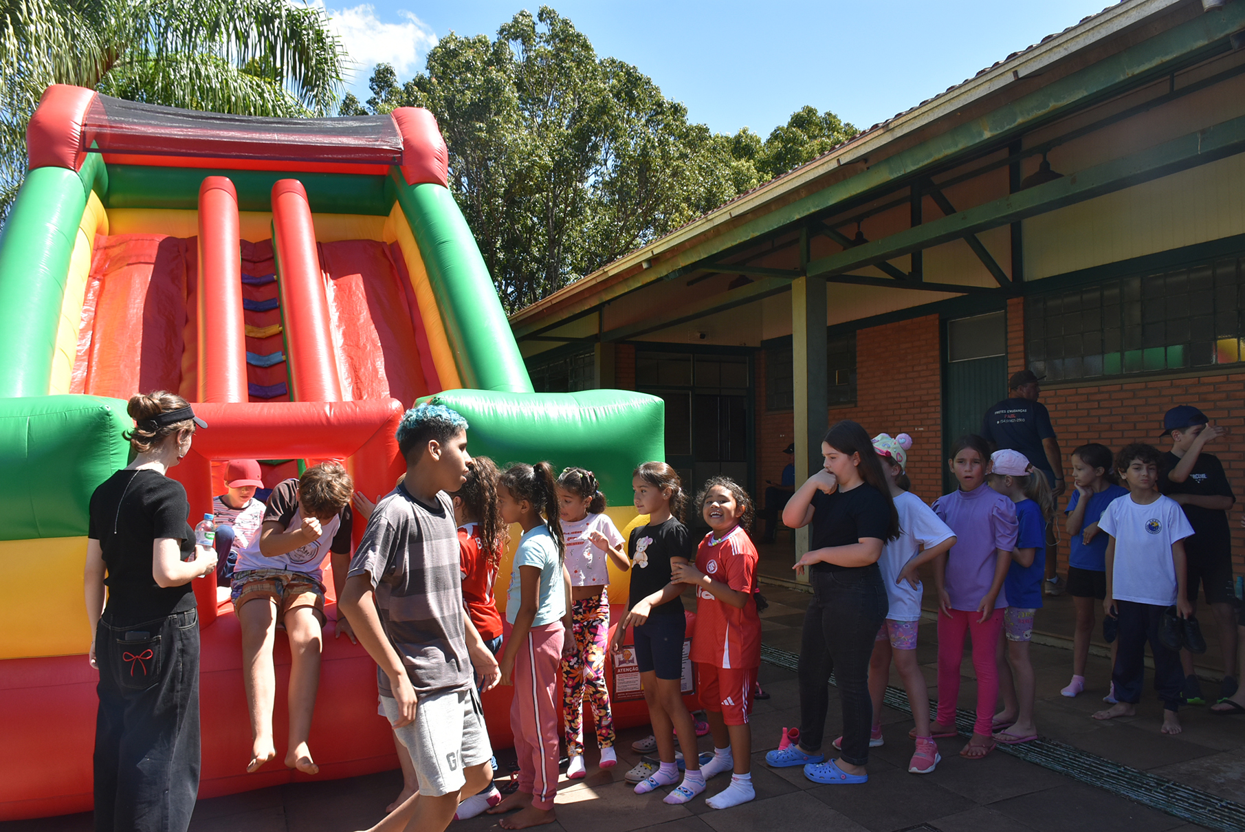 Ao longo da tarde, as crianças participaram de diversas atividades recreativas, entre elas brinquedos infláveis disponibilizados pelo Sesc, como tobogã gigante e cama elástica, além de circuitos motores, jogos no gramado e práticas esportivas orientadas. Também houve momentos dedicados a atividades culturais, com vivências que despertaram a curiosidade e a participação dos alunos.
