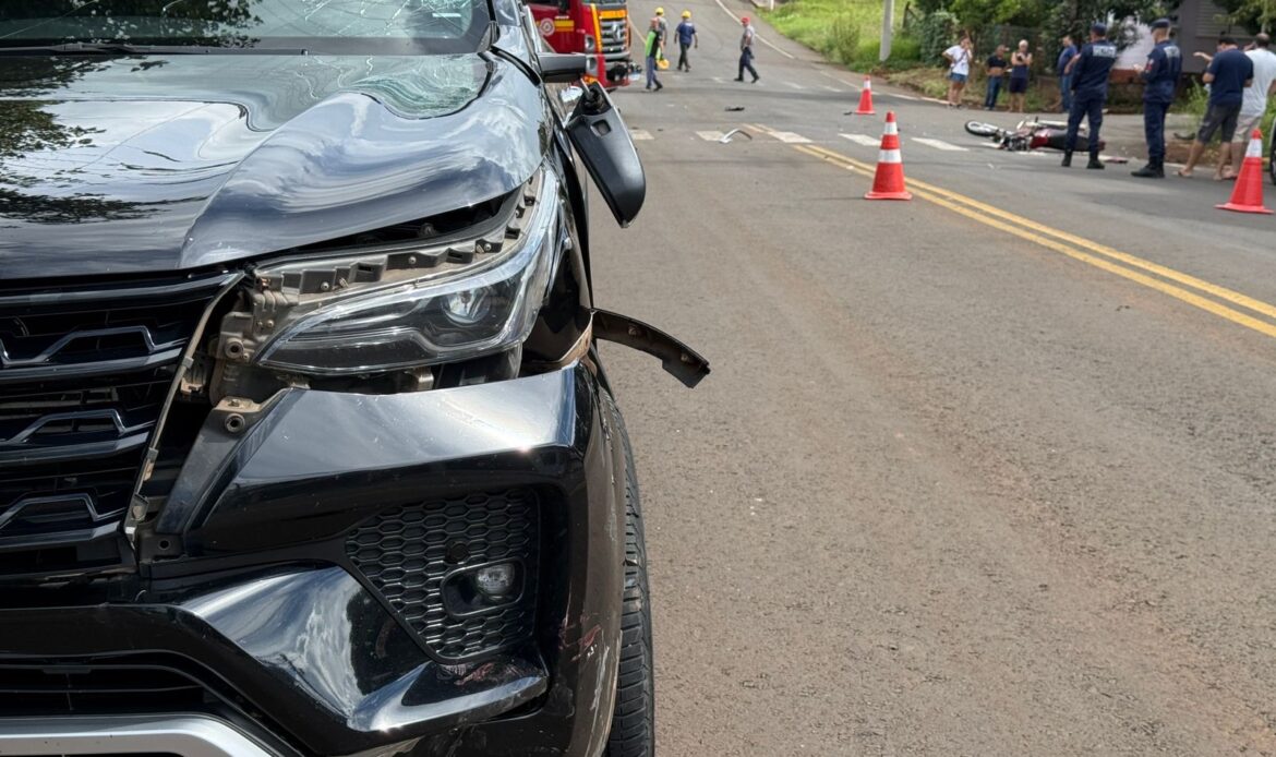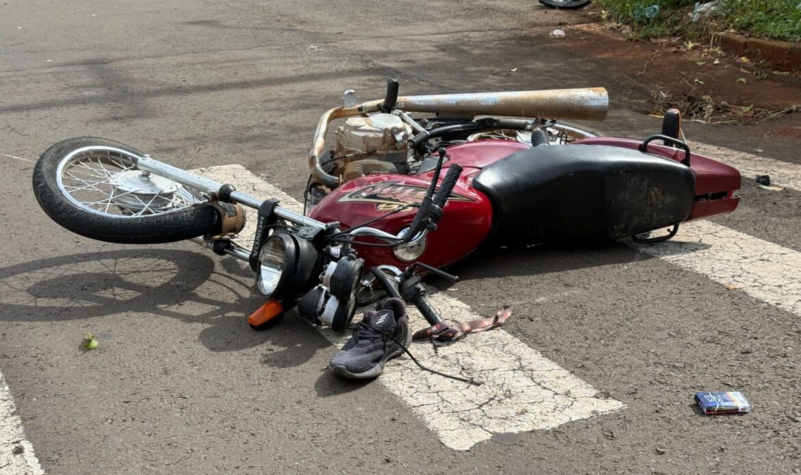 O acidente ocorreu no cruzamento das ruas Afonso Tochetto com a rua Constante Richetti, e envolveu uma Honda CG e uma Toyota/Hilux.